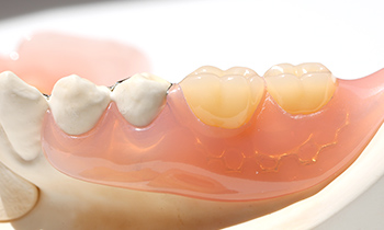 金属のバネを使わないノンクラスプデンチャーは、目立ちにくく、見た目にこだわりたいかたに適した入れ歯です。歯ぐきに近い色調の素材を使用し、自然な仕上がりが得られます。やわらかい素材で違和感が少なく、笑ったときにも気づかれにくいのが魅力です。