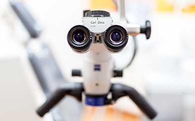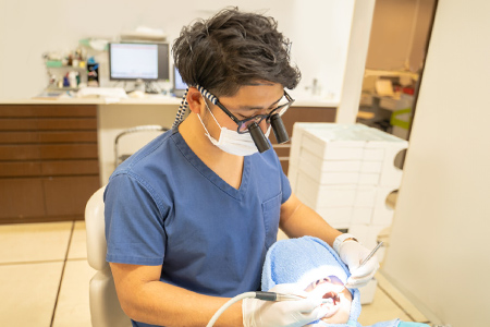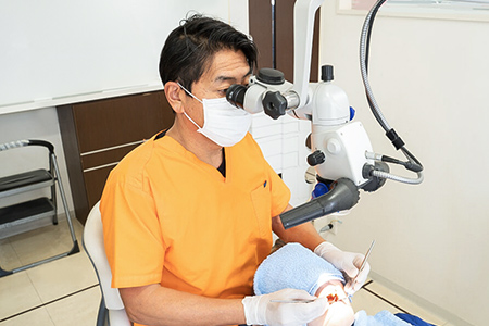 患部を拡大して視認できるズーを使用し、根管内の細部までしっかり確認しながら処置を行っています。精度の高い治療で再発リスクの軽減をめざします。